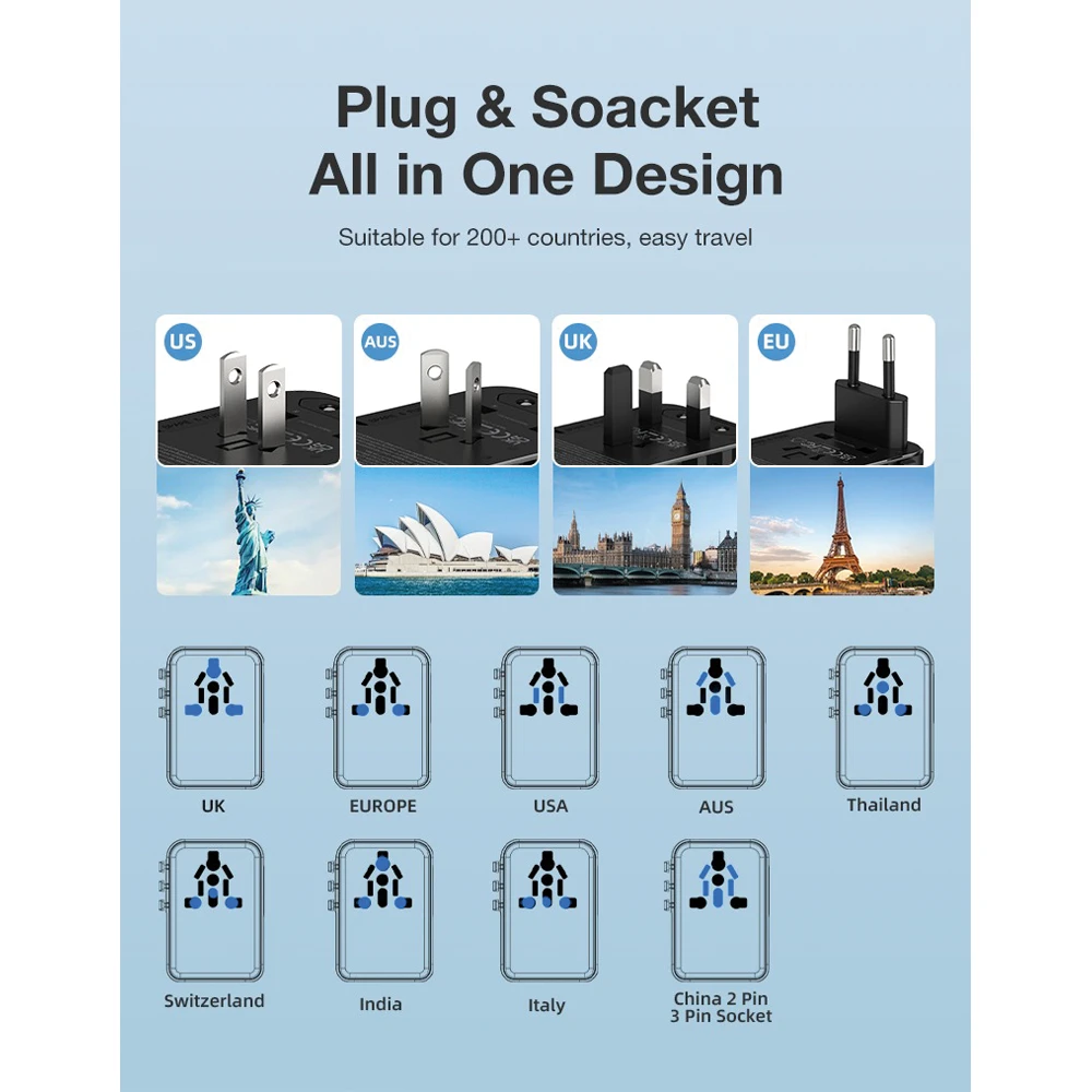 * 45 Watt * 200+ Ülkede şarj imkanı * Ebat: 5.47 x 7.54 x 5.3 cm